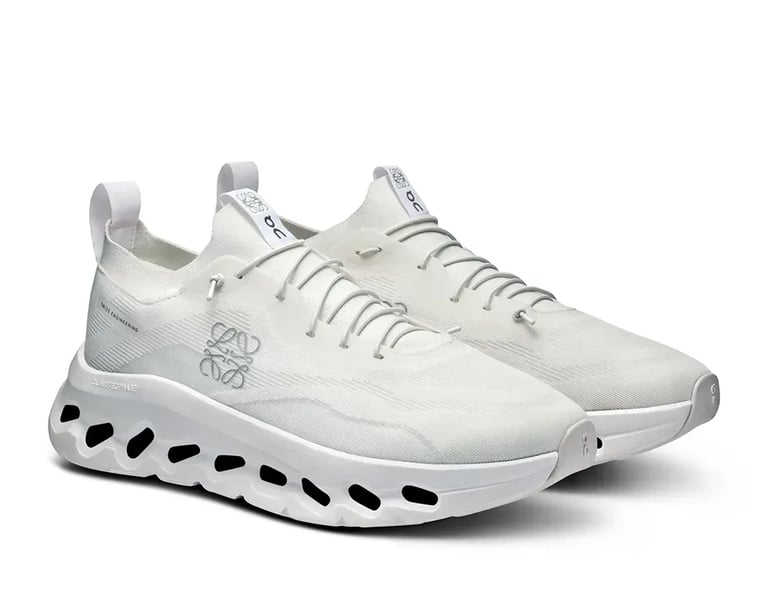 Loewe marca de moda de luxo espanhola fez collab com marca de tênis On Running (imagem à direita)