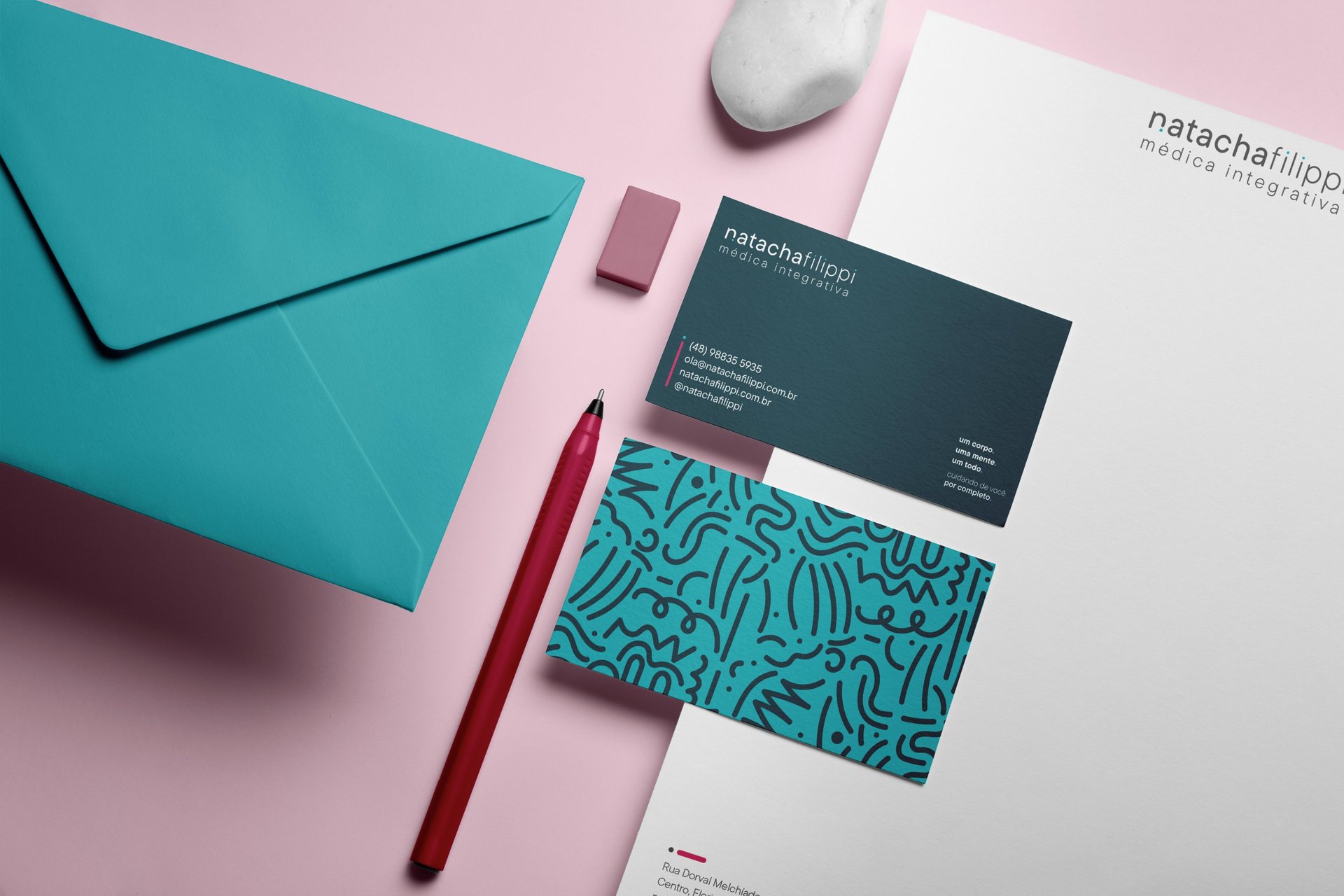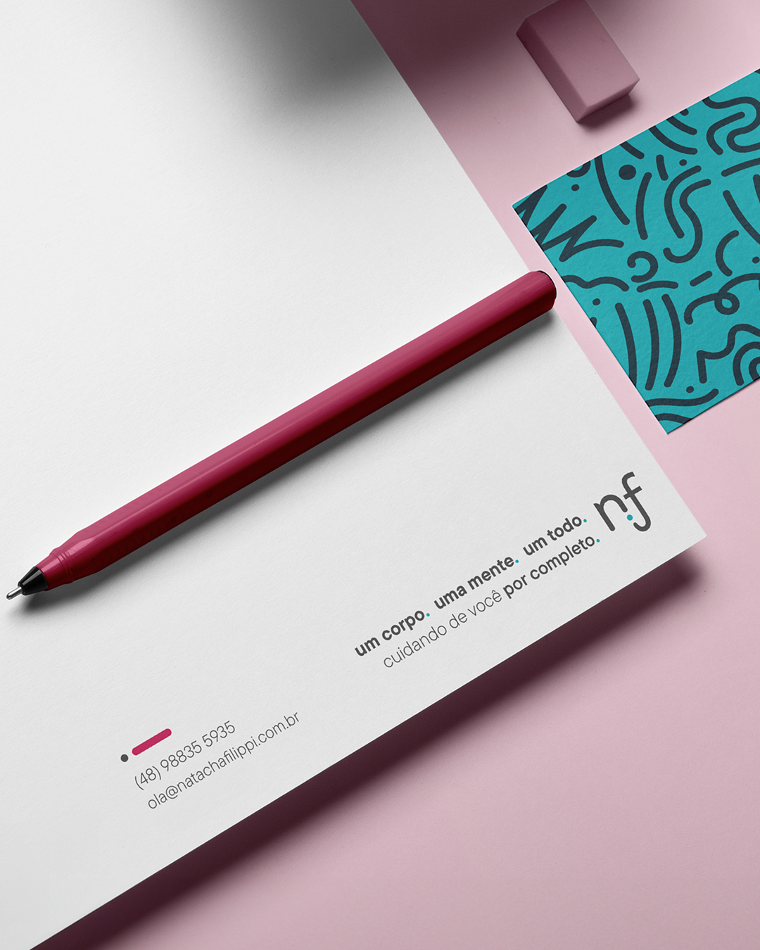 A marca da Dra. Natacha Filippi é a personificação da sua essência – leve, alegre, acolhedora e transformadora. Sua abordagem holística fica evidente na identidade visual fluida, orgânica e limpa, refletindo a conexão integral entre corpo e mente.